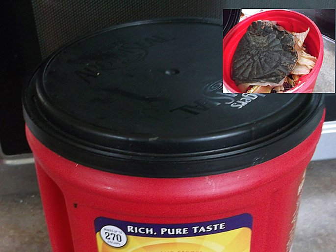 How it works: Drill holes in a plastic bucket, add a lid, and use it for aerobic composting. You can build two for rotating batches.