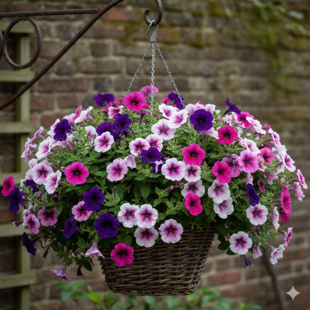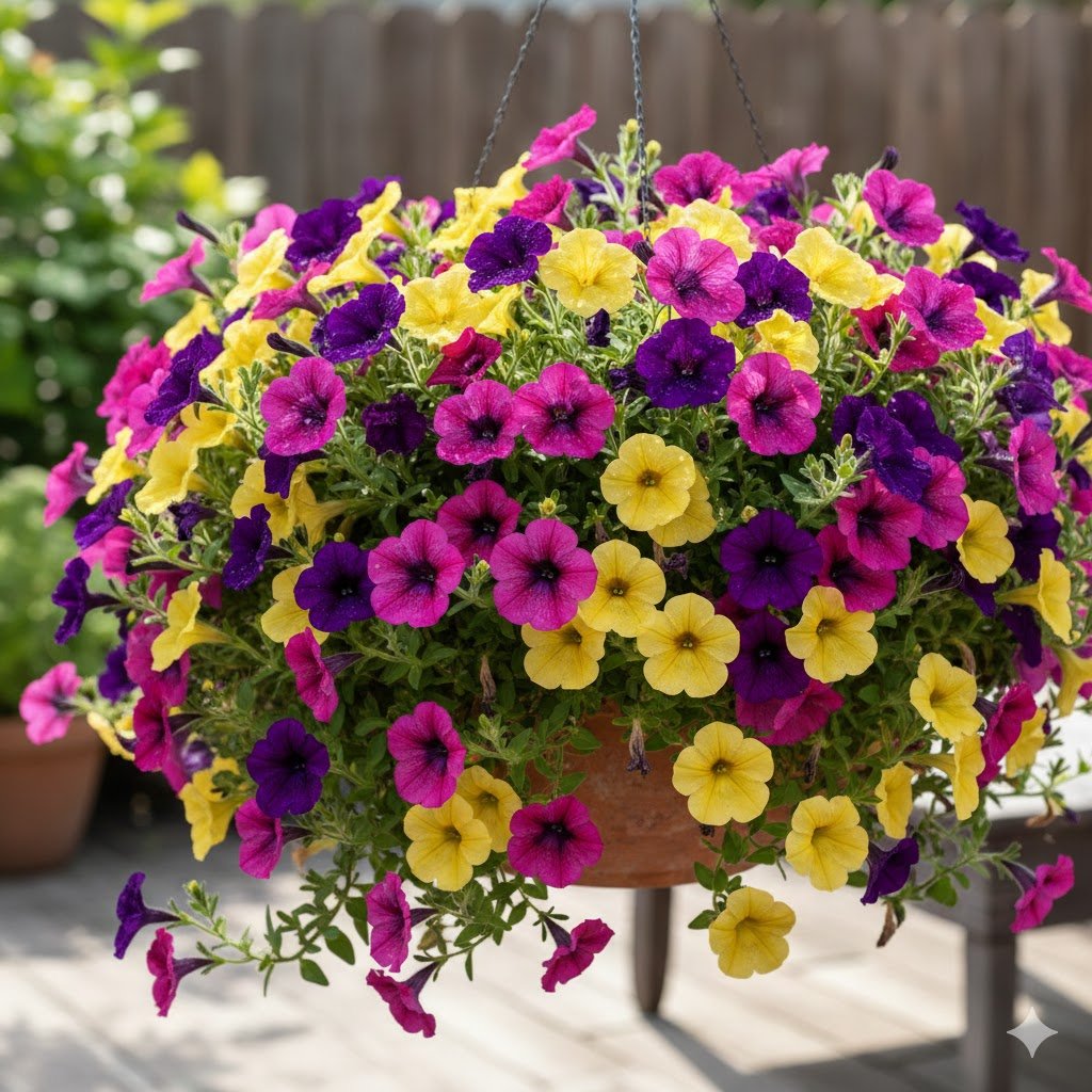 Skip the cheap varieties that melt in heat. Spend a little more on wave or supertunia types. They bloom like champions and forgive missed waterings better.