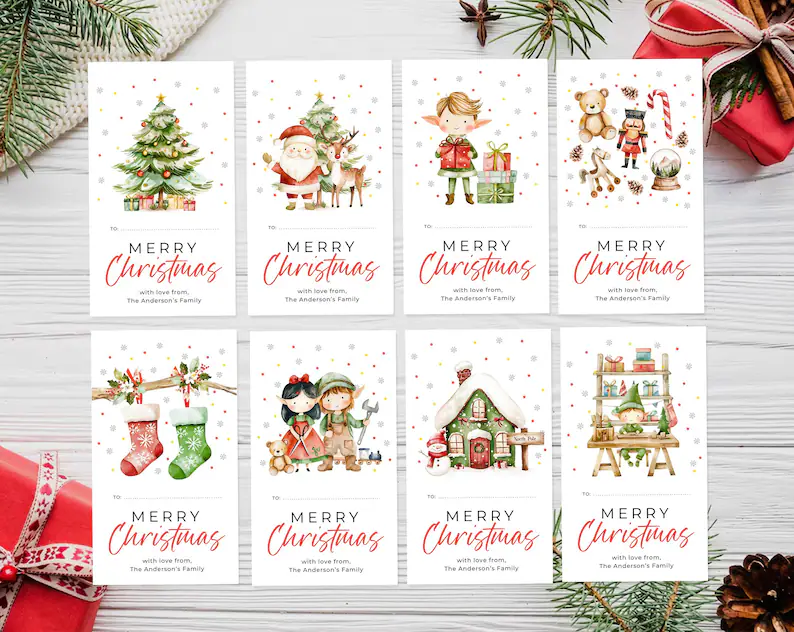 They’re also incredibly practical. Instead of rushing to the store when you run out of tags, you can print a fresh sheet at home. Most free sets online come in multiple designs, so you’ll have options that fit everything from whimsical kids’ presents to classy adult gifts. I like keeping a sheet ready on my desk during December—it saves me more often than I’d like to admit.