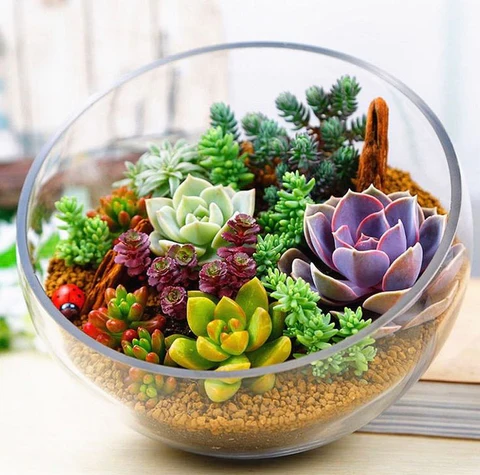 I love using these in larger terrariums where I want a fuller, clustered look. They come in different shades of green, red, and even purple, which adds depth to your arrangement.