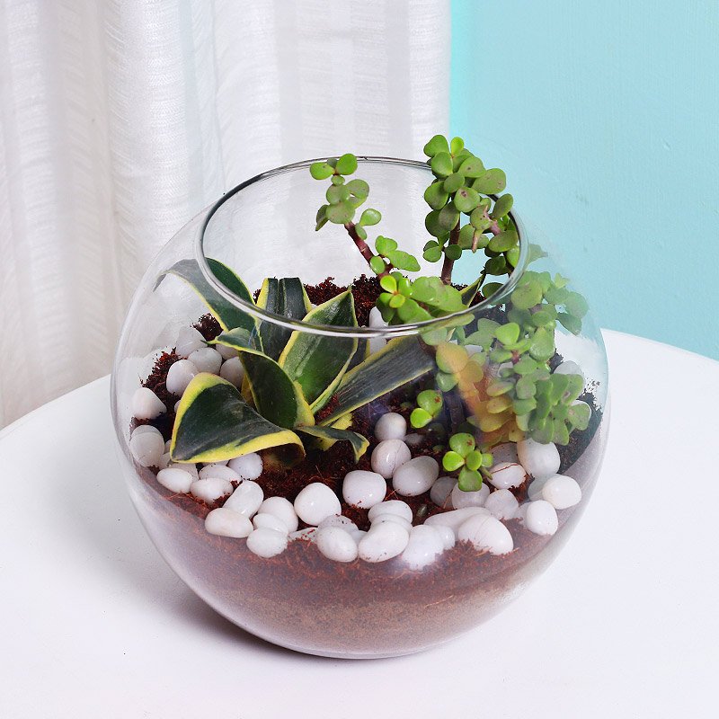 Stick with plants that have similar light and water needs. Place your terrarium in a bright spot, and don’t overwater. Less is more when it comes to succulents.