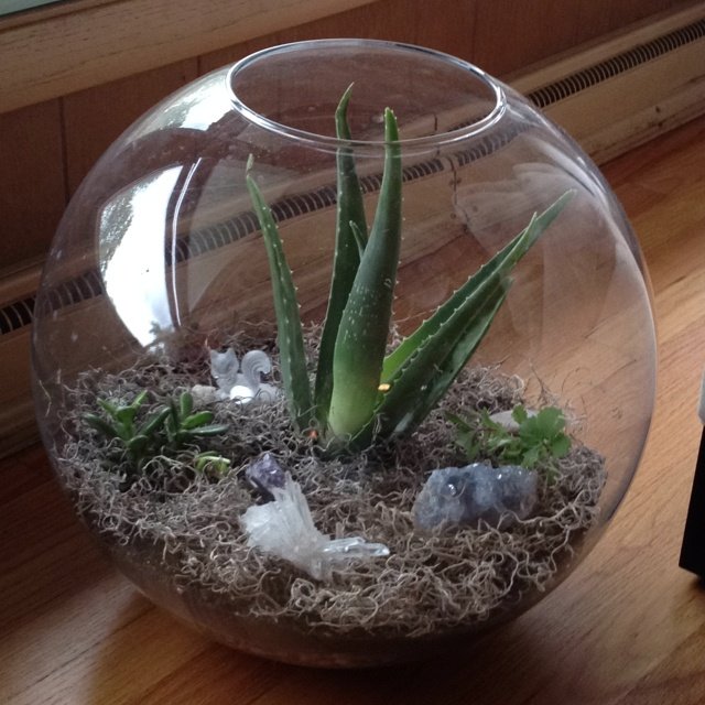 Besides being beautiful, they also come with the bonus of having soothing gel inside the leaves. Though in a terrarium, I mostly enjoy them for their sculptural vibe.