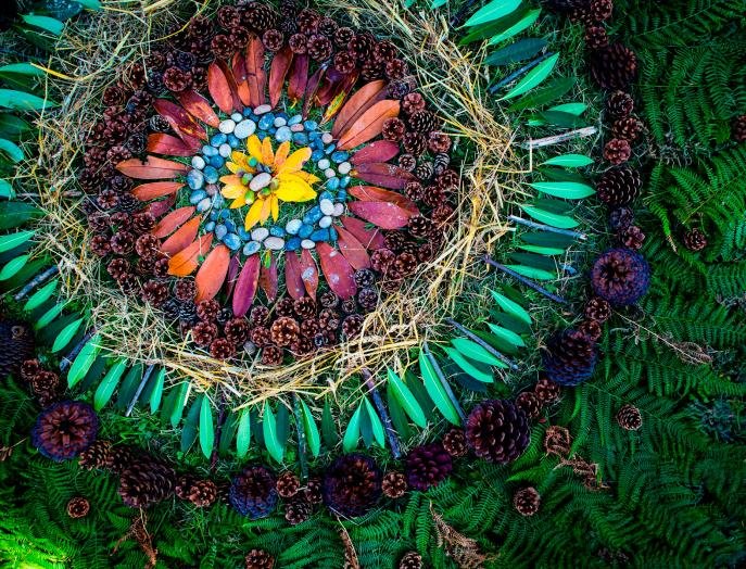 • Use a variety of colors, textures, and sizes in the natural materials for a more visually appealing mandala.