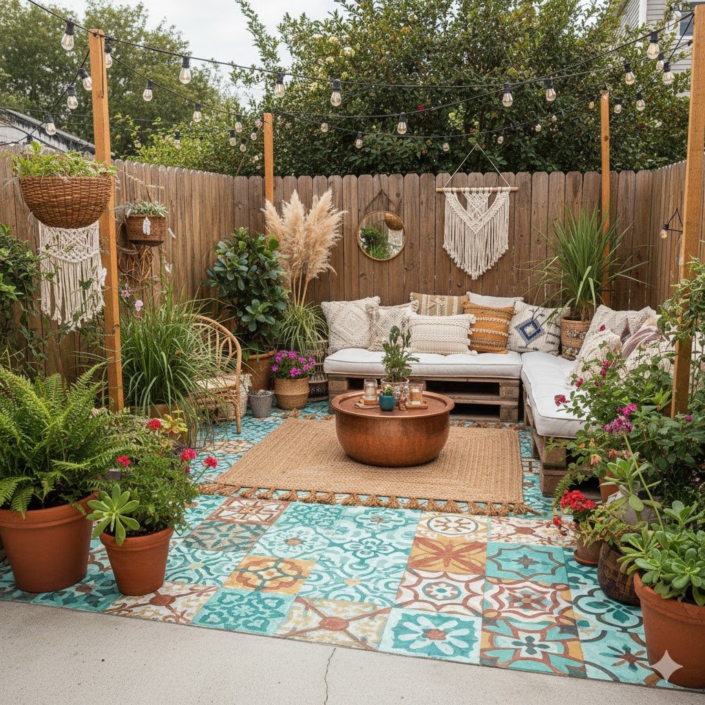 1. Cheap Boho Patio Flooring Ideas: The Power of Stencils
