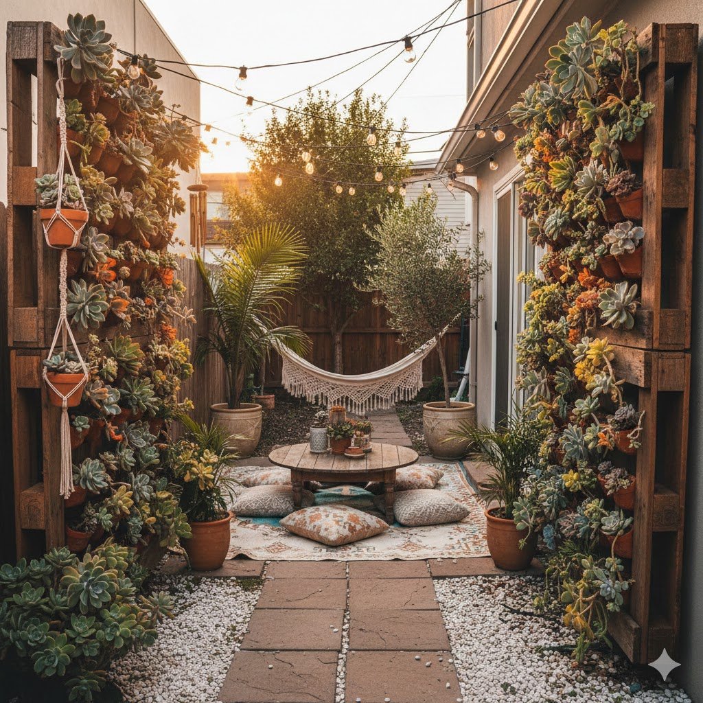 When your yard is the size of a postage stamp, you can’t afford to give up precious floor real estate for bulky planters. This is where you go vertical. I’m a huge fan of using old wooden pallets—properly cleaned and sanded, because splinters are not “boho”—to create a living wall.