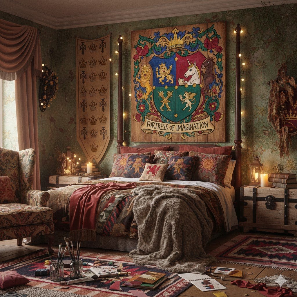 Every proper castle needs some form of heraldry to establish its aristocratic credentials and legacy. A personalized coat of arms or a stylized crest is an easy, high-impact DIY project that gives your room an instant history and a sense of personalized grandeur, making the space feel uniquely and regally yours.