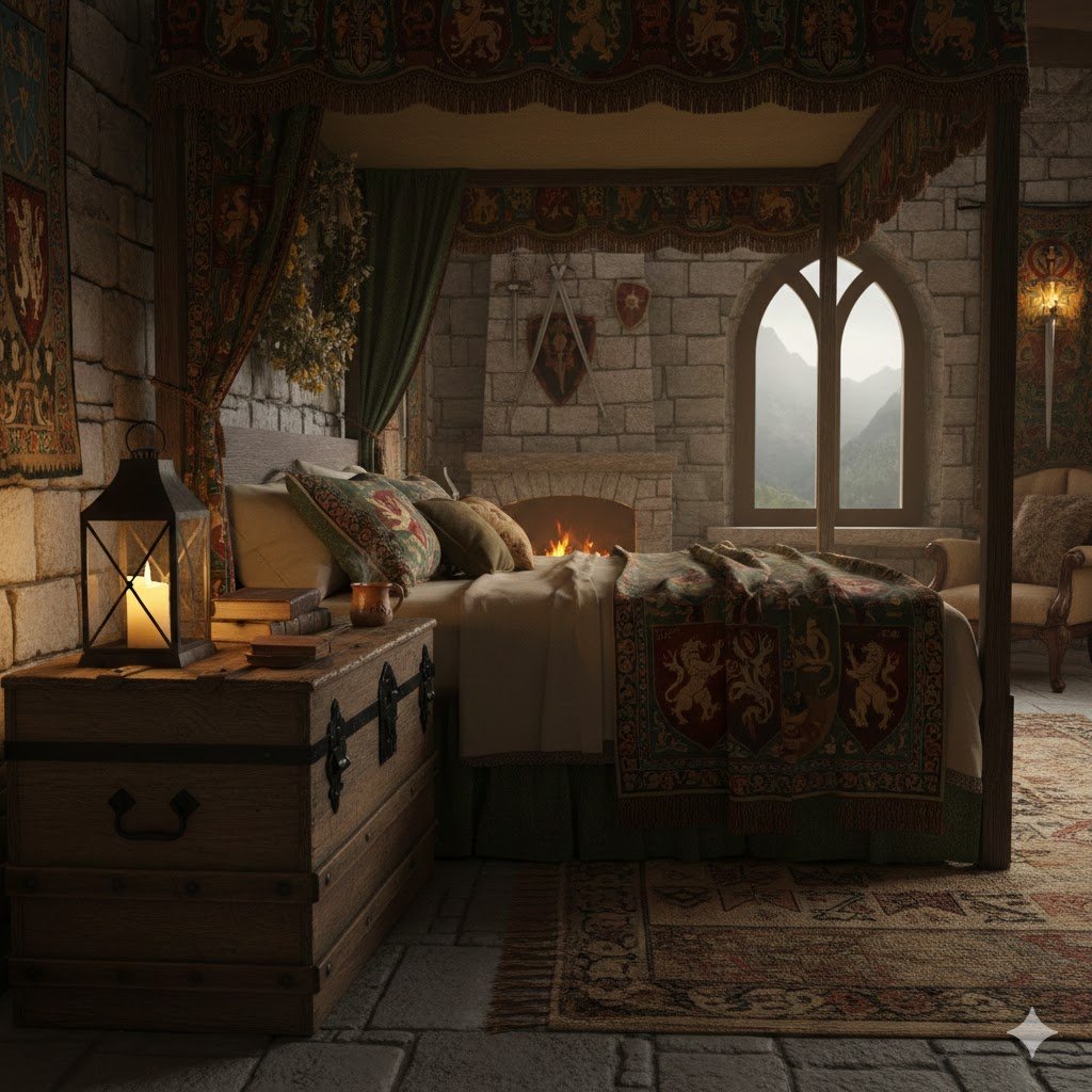 Do you ever walk into your bedroom and wish it felt less like a functional sleeping area and more like a retreat? I know I do. There’s something deeply satisfying about transforming a plain, white-walled space into an environment that truly tells a story. And for me, no story is more evocative or cozy than that of a medieval keep. That’s where Castlecore comes in—it’s the perfect blend of royal drama, the scholarly moodiness of Dark Academia, and the rugged, enduring texture of historical architecture.