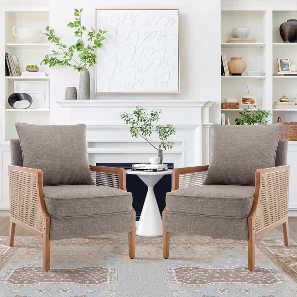 Rattan accent chairs bring texture and comfort to any corner of your home. Their open weave design and natural finish make them perfect for a cozy reading nook, sunny entryway, or covered porch. Pair them with cushions in sandy beige or seafoam tones.