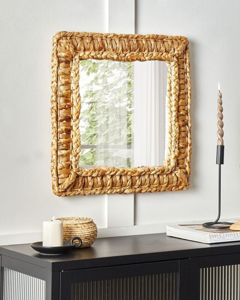 Mirrors play a key role in coastal design by amplifying light and creating a sense of space. Adding a rattan frame to a basic mirror not only enhances its visual appeal but also contributes to the natural, breezy vibe of elevated rattan home décor.