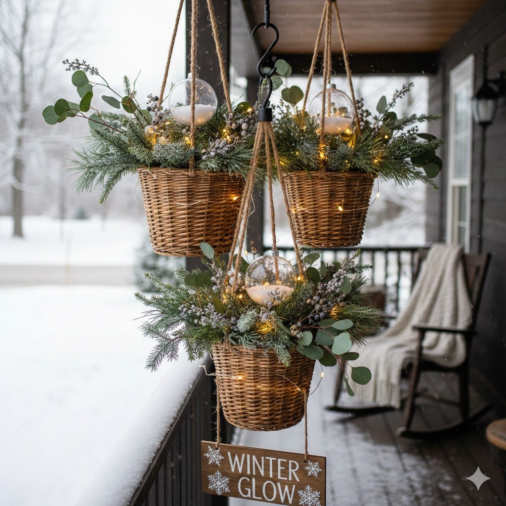 3. DIY Hanging Lighted Baskets for Winter