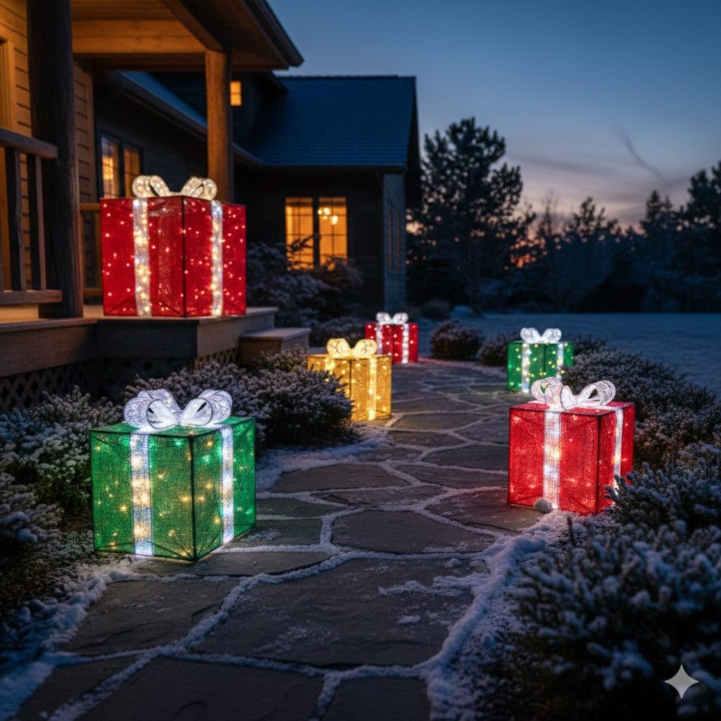 7. Lighted Gift Box Walkway Markers