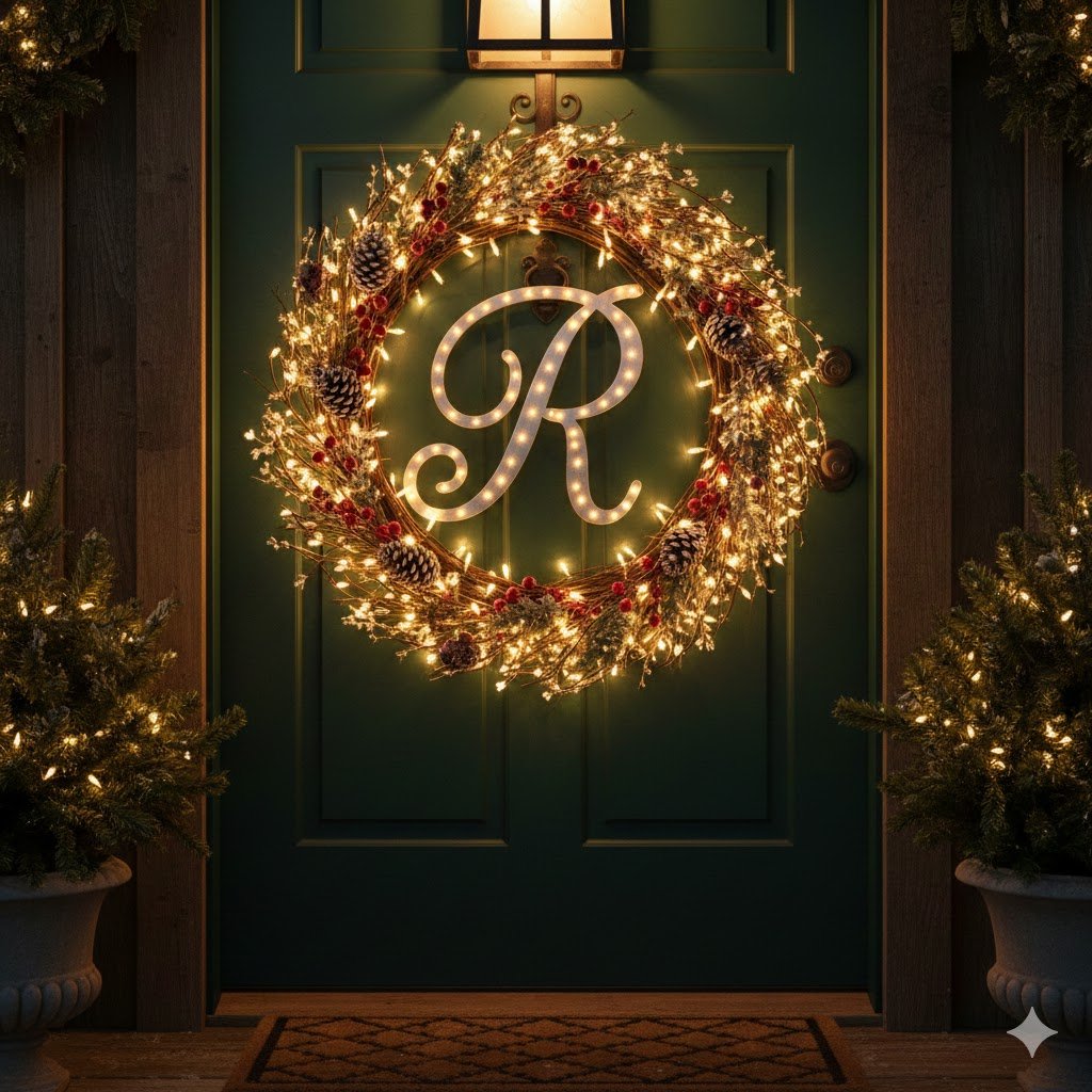 Tuck in some oversized pinecones and maybe a few sprigs of holly. The contrast between the natural textures and the clean lines of the monogram letter looks very sophisticated. It’s a custom look for a fraction of the price of those fancy wreath shops.