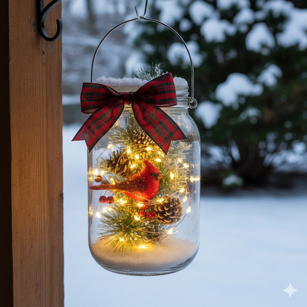 Wrap a sprig of real cedar or pine around the handle. The smell is fantastic, and since it’s outside, it stays fresh way longer than it would in your dry, heated living room. Just make sure the greenery isn’t touching any heat source, though most LEDs stay cool enough that it’s not a disaster waiting to happen.