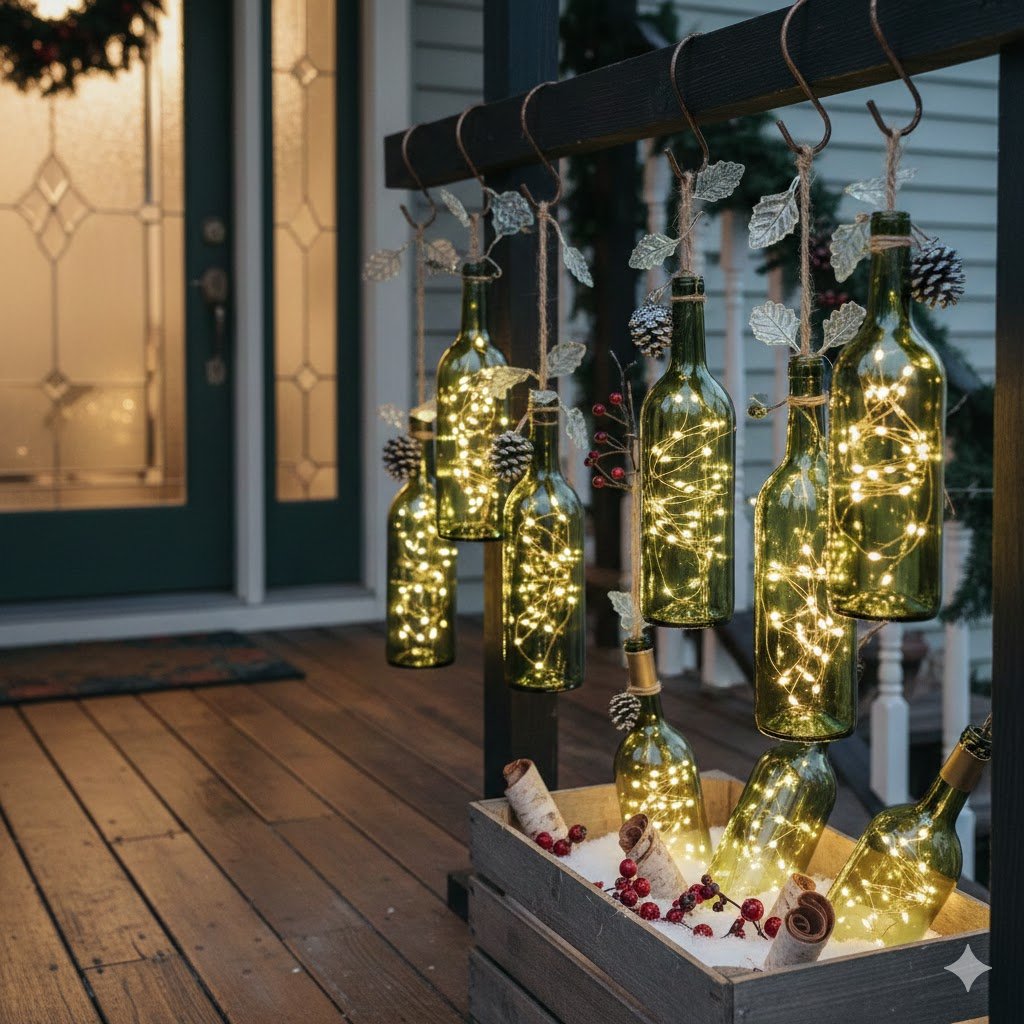 To make them look more festive, tie a piece of twine around the neck and add a small sprig of evergreen or a tiny silver bell. It’s a very “farmhouse chic” look that feels intentional rather than just “I left my recycling out.”