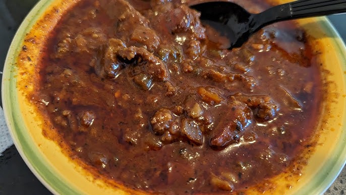 - Ingredients: Prime rib chunks, two types of beans (kidney, black), fire-roasted tomatoes, chili powder, cumin, and a spoonful of cocoa powder for richness.