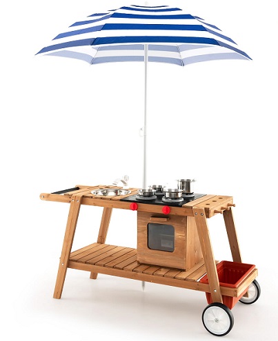 If your space is limited or you want something portable, a rolling mud kitchen is the way to go. This setup allows for easy storage and repositioning as needed.