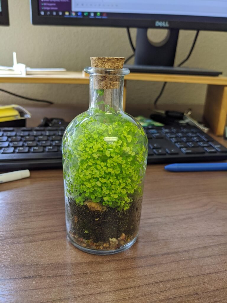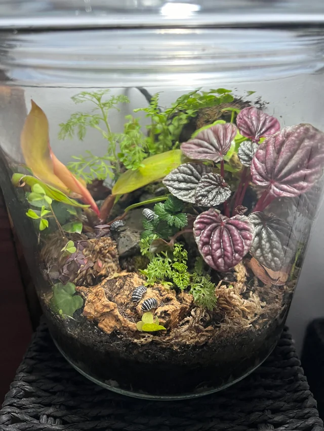 It loves humidity and indirect light, and it grows quickly. That means you might need to give it a trim now and then to keep it from overtaking everything else. But honestly, that just adds to the fun—watching your little ecosystem evolve.