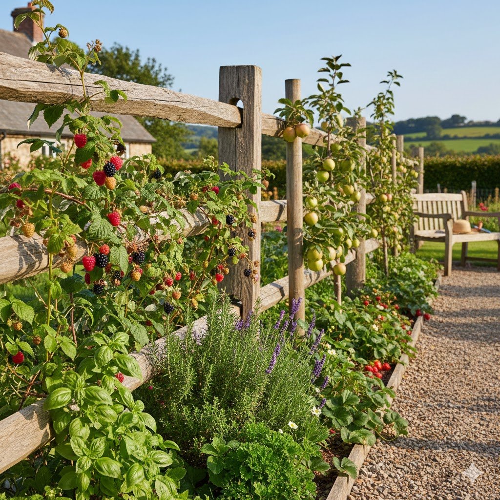 5. Edible Fence Lines: Fruit and Herbs