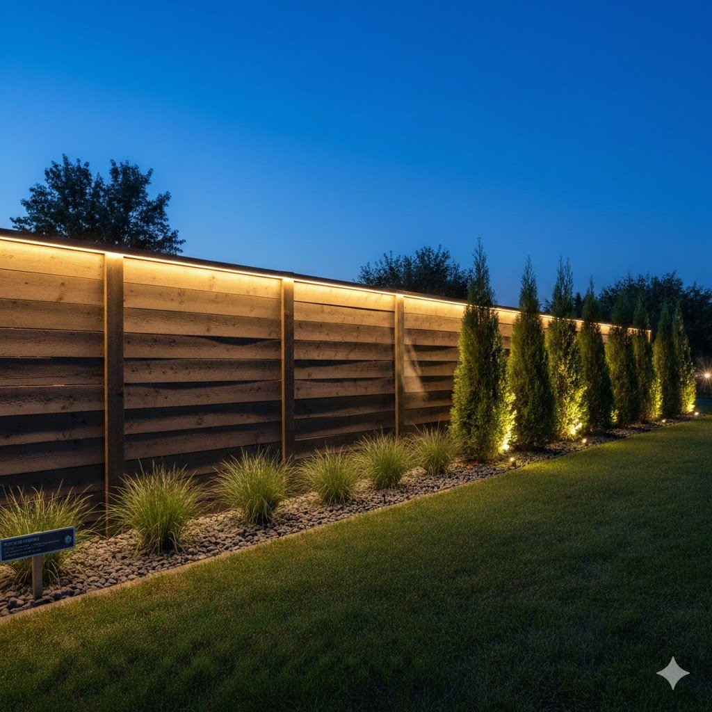 You’ve spent all this time and money on plants; don’t let them disappear the moment the sun goes down. Fence Lighting is the most underrated part of landscaping. I used to have a yard that looked like a “black hole” at night. Then I spent a Saturday installing some simple low-voltage lights, and now it feels like a high-end resort.