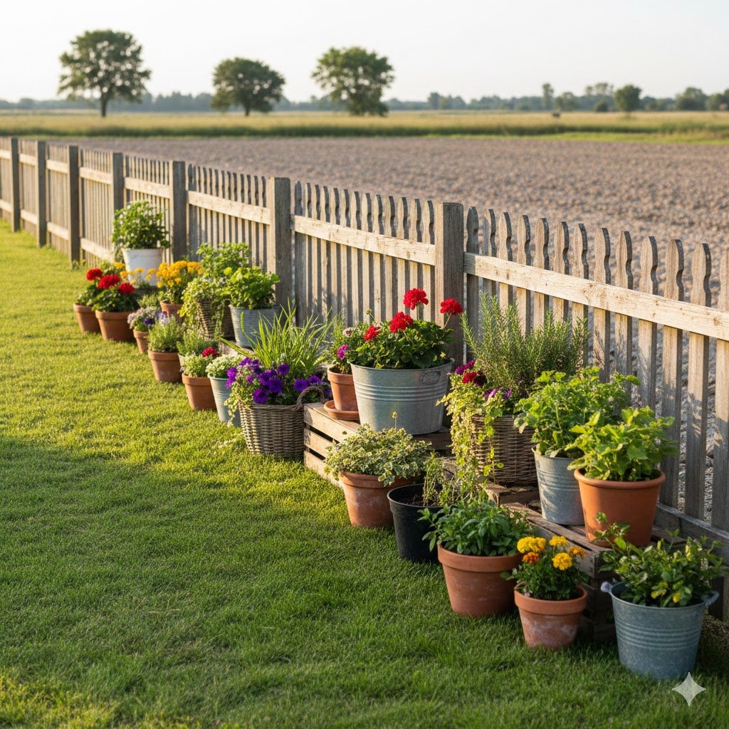 Sometimes you can’t dig. Maybe you’re renting, or maybe your soil is so full of rocks and clay that a shovel won’t even dent it. (I once lived in a place where the “soil” was basically 90% construction debris and 10% spite). In these cases, Container Gardening along the fence is your best friend.