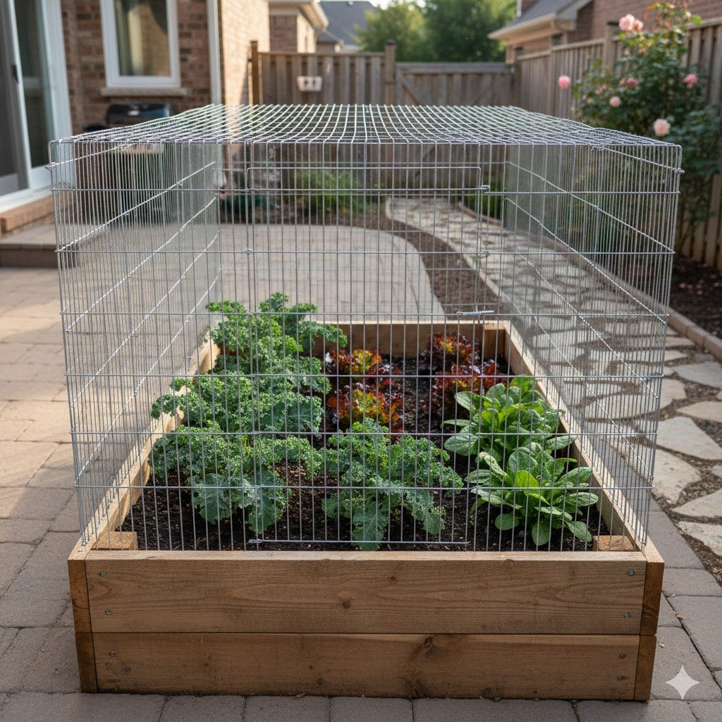 The base is a standard raised bed, but you add a tall frame made of thin wood or PVC pipe. Cover this frame with hardware cloth (wire mesh) rather than plastic netting. Birds and small critters can get tangled in plastic netting, but hardware cloth is safe and effective.