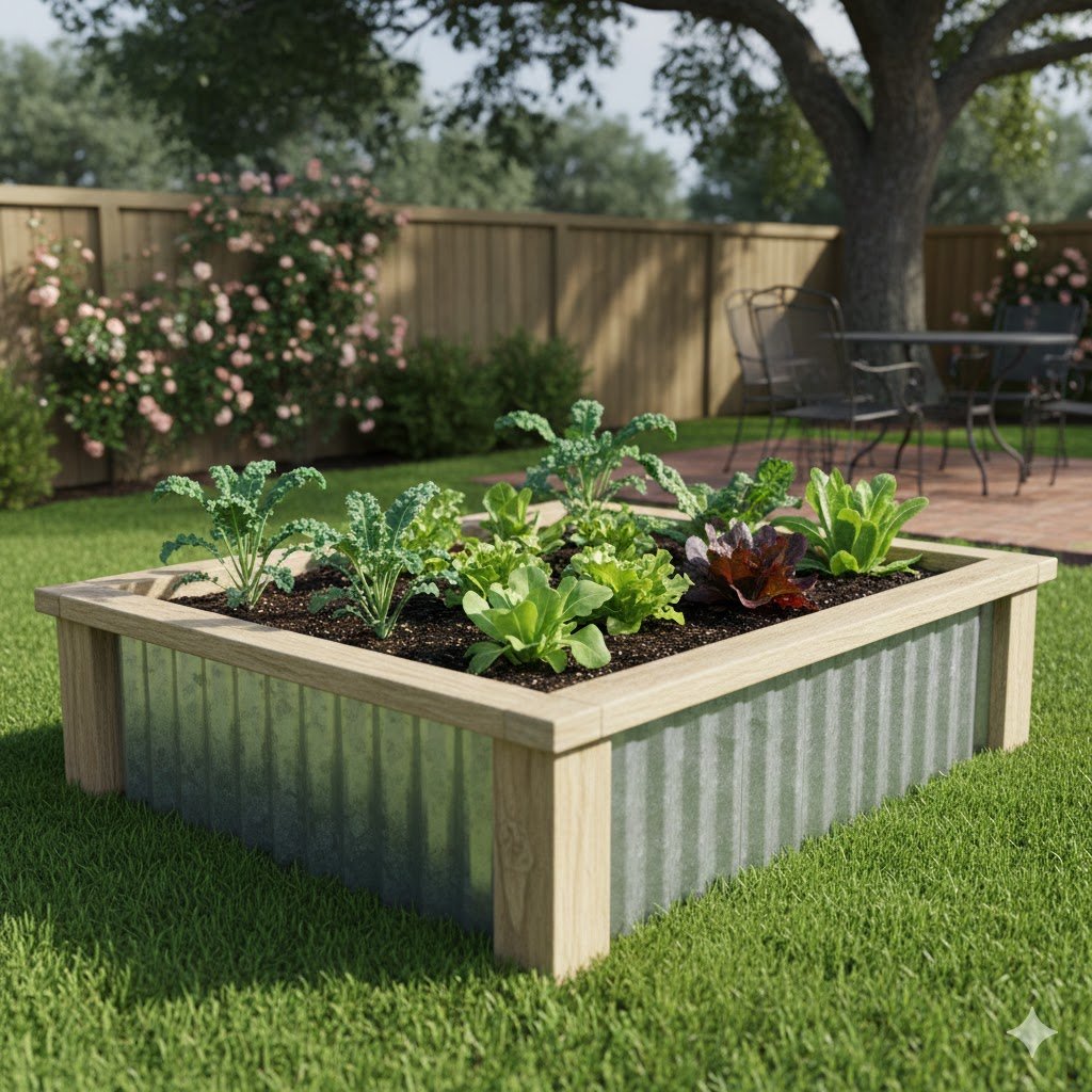 To build this, you’ll create a wooden “picture frame” for each of the four sides. Use rot-resistant wood like cedar or redwood for the best results. You’ll want to cut a groove into the wood or use small cleats to hold the metal panels securely in place. The metal itself should be galvanized to prevent rust.
