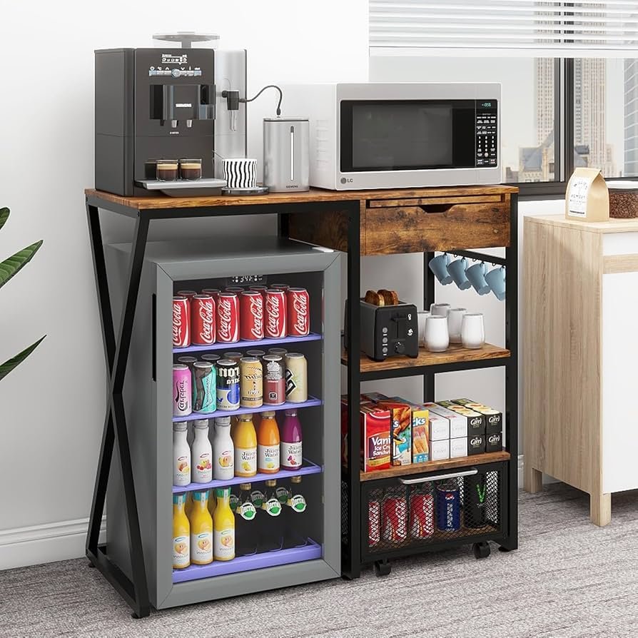 Use a tray or rolling cart to define the space, then add a tiered organizer, drawer dividers, or canisters to hold pods, sweeteners, and stirrers. Wall-mounted racks for mugs or open shelving for flavor syrups can add both function and flair. This area can be as compact or expansive as your kitchen allows.