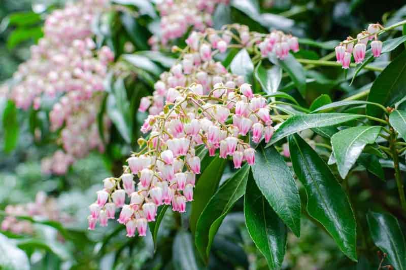 Pieris japonica “Valley rose” blooming in spring in the botany.