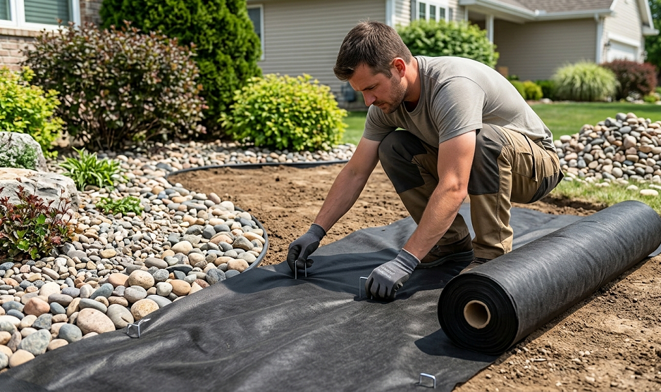 If you’re on a budget, you can use thick corrugated cardboard underneath your rocks instead of expensive fabric. It eventually rots away, which is usually a bad thing, but it does a fantastic job of smothering the existing grass and weeds during the first year. I’ve used this in areas where I know I might want to plant something in five years but want it clear for now. Just make sure you remove all the packing tape first, or you’ll be picking plastic strips out of your rocks for a decade.