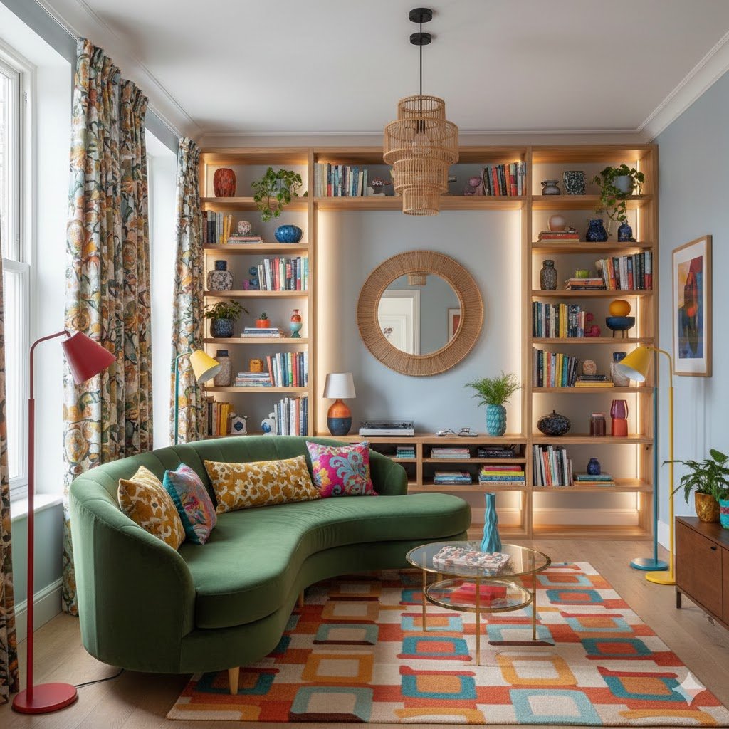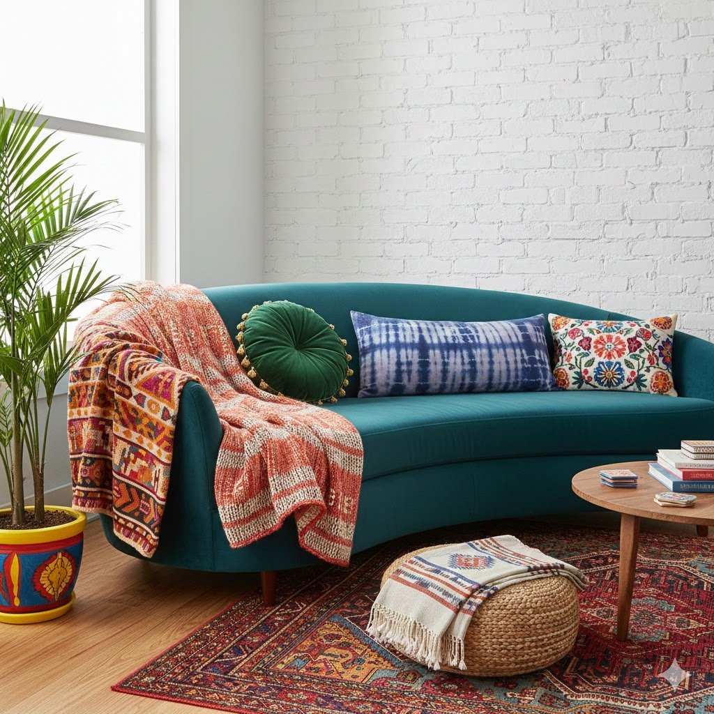 Your curved sofa is a perfect, flowing statement piece. With smart placement that allows it to float, lightweight supporting furniture, and a focus on layered, affordable textures, you can absolutely create a high-style, spacious-feeling living room, even if your budget is tight and your square footage is limited. It’s not about how big the room is; it’s about creating flow and breathing room around your design focal point.