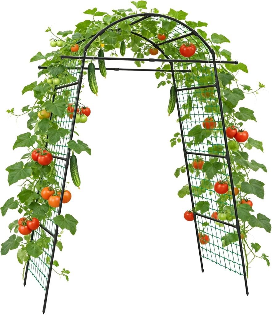 This trellis provides a sturdy support system for lighter weight vining plants like cucumbers and morning glories.