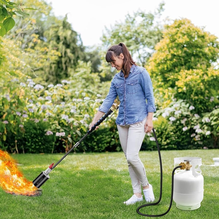 For the stubborn ones that seem to pop up no matter what, I break out the weed torch. It sounds intense, but it’s actually a controlled and safe way to get rid of sticker plants without chemicals. The heat from the flame destroys the plant cells and even kills some of the seeds.