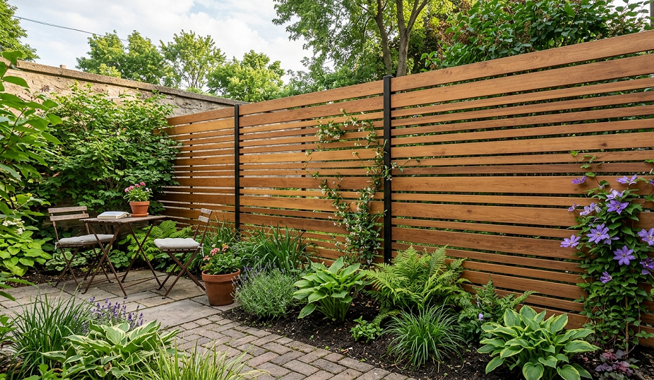 If you must go with wood, please stop building vertical picket fences. In a small garden, vertical lines make the space feel like a well. Horizontal slats, however, draw the eye outward, creating the illusion that your yard is much wider than it actually is. It’s an old interior design trick that works perfectly outdoors.