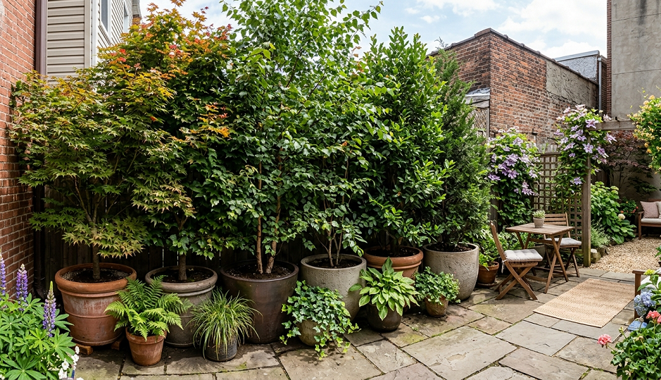The beauty of trees is that they change with the seasons. A fence is a fence 365 days a year. A tree gives you spring blossoms, summer shade, and autumn color. It makes your garden feel like a living thing rather than just a room. Just be prepared to water them—trees in pots dry out much faster than trees in the ground.