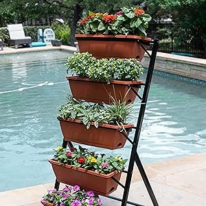These planters are ideal for poolside areas where frequent watering might be a hassle. Use them for sun-loving flowers like petunias or trailing calibrachoa, or stick with hardy foliage like philodendrons or ornamental grasses. They’re also great for vacation homes where constant care isn’t possible.