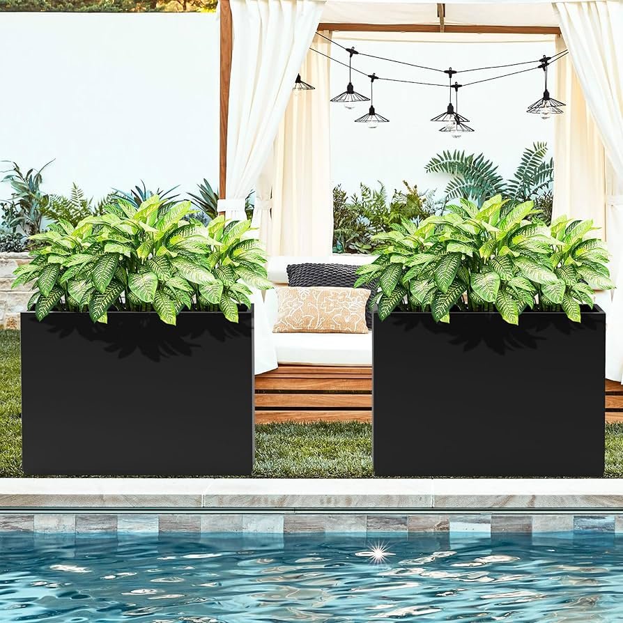 If you prefer a modern, urban aesthetic, minimalist black fiberglass planters offer clean lines and a bold contrast to poolside whites, blues, and greens. These planters are incredibly lightweight yet durable, making them ideal for contemporary spaces where mobility and durability are key.