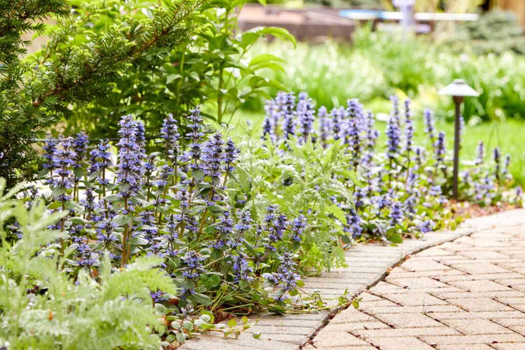 Bugleweed is a fast-spreading groundcover that offers glossy leaves and vibrant flower spikes in blue, purple, pink, or white. The foliage comes in a range of colors, including green, bronze, and burgundy, providing year-round interest even when it’s not in bloom.