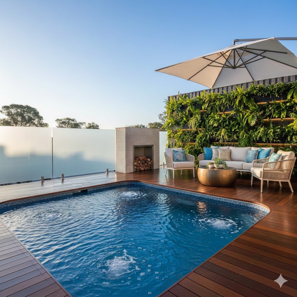 To elevate its appeal, opt for a minimalist design with glass tiles, subtle lighting, and modern landscaping. Adding a pergola or overhead shade structure can enhance the visual appeal while providing comfort for daytime swims.