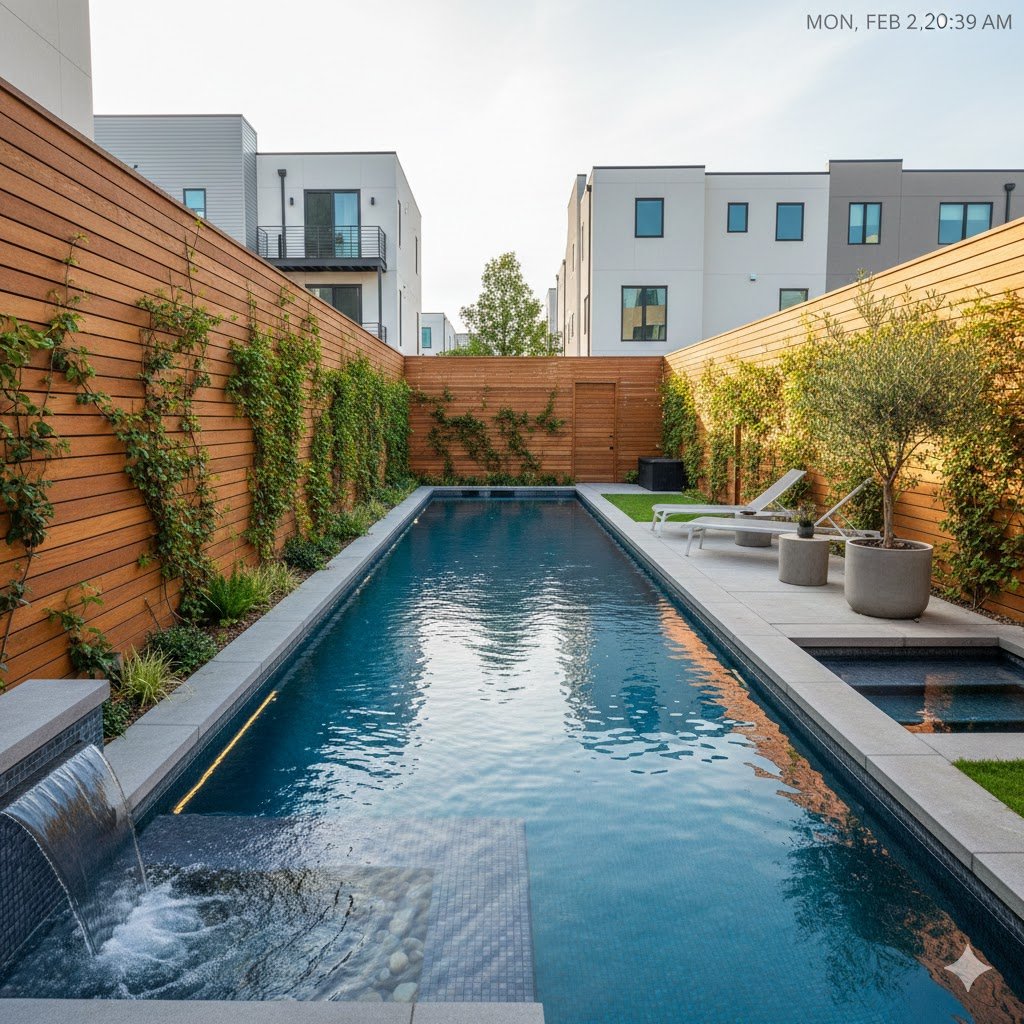 A narrow lap pool is perfect for small spaces while still offering the luxury of a private swimming area. Designed for both fitness and relaxation, this style provides a long and sleek water feature that fits neatly alongside a patio or garden.