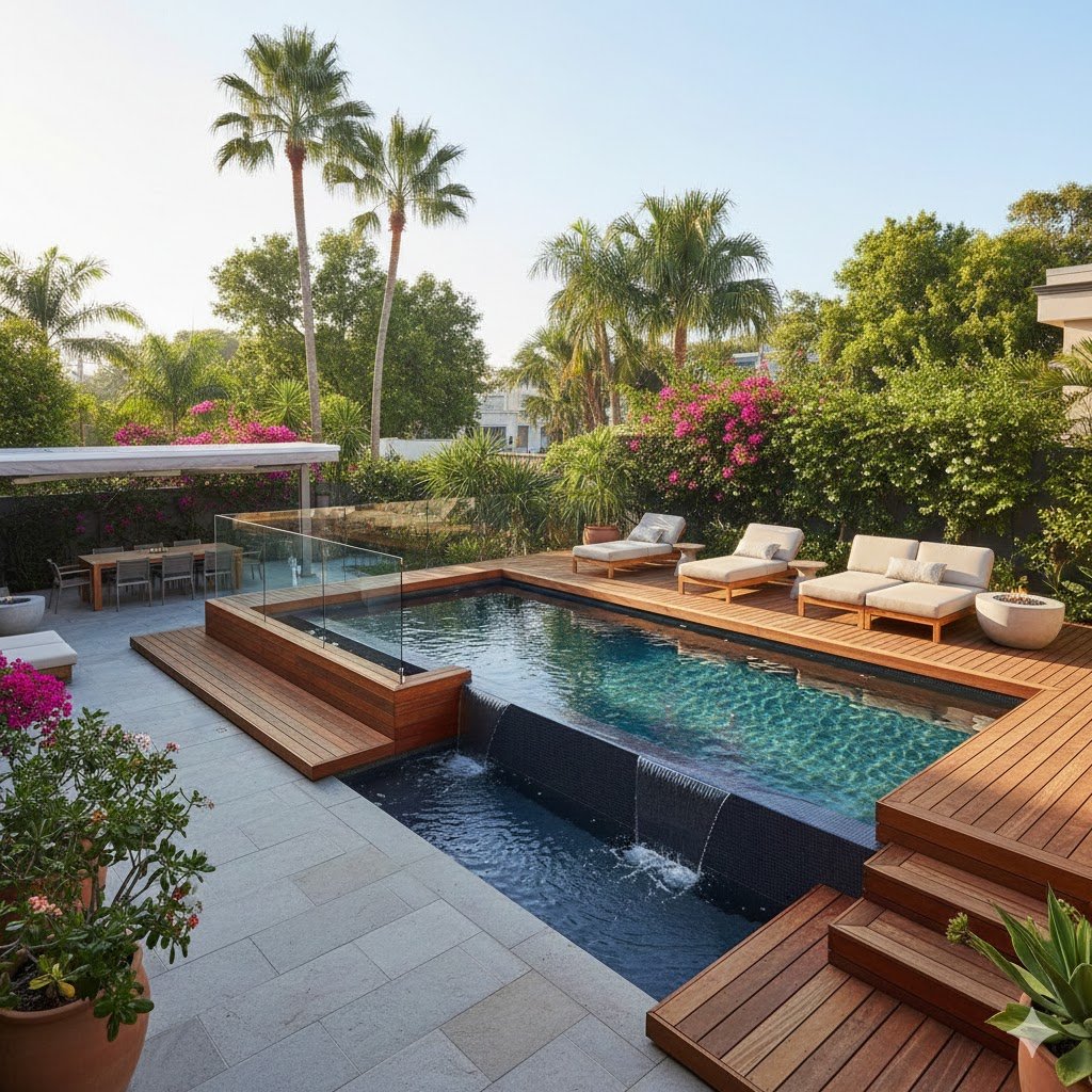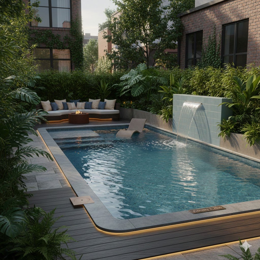 A plunge pool is a compact yet deep design that provides the ultimate cooling retreat. Adding a waterfall feature enhances its luxurious appeal while also creating a soothing ambiance with the gentle sound of flowing water. This style is perfect for small yards, as it maximizes relaxation without taking up too much space.