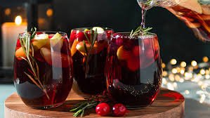 - In a large jug, combine 1 bottle red wine, ½ cup brandy, 2 cups apple cider, sliced apples, oranges, cranberries, and cinnamon sticks.