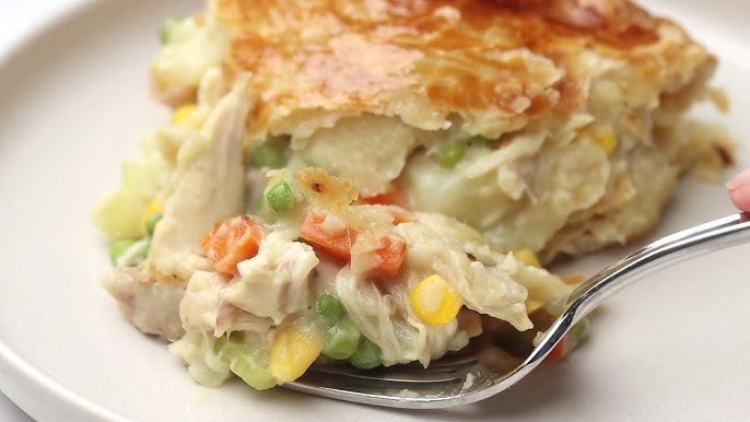 - Pour into a pie dish, cover with pie crust, and bake at 375°F for 35 minutes until golden.