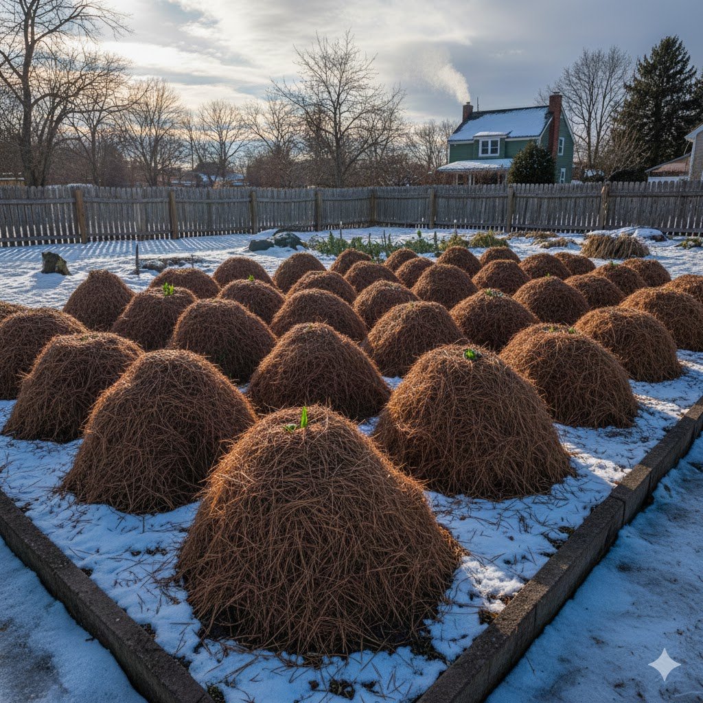 I’ve found that even after a heavy snow, the pine needle mound stays relatively dry underneath. It’s a fantastic way to protect roses or strawberries. In the spring, you don’t even have to remove it; just spread the needles out to serve as a weed-suppressing mulch for the rest of the season. It’s one of those “set it and forget it” hacks that actually works.