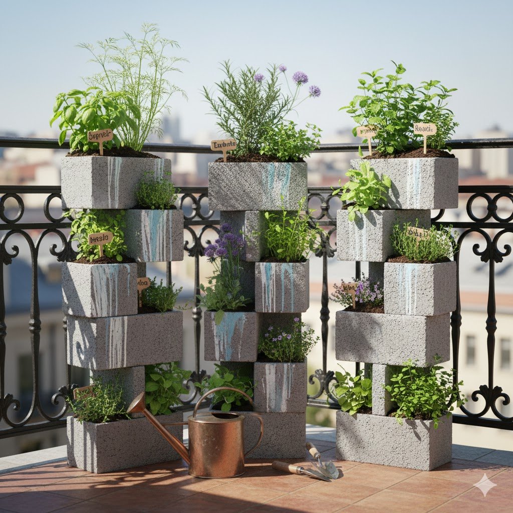 If you like an industrial, robust look, stacking hollow cinder blocks is a fantastic option. You stack the blocks, typically in a staggered formation for stability, and use the wide, hollow holes to plant small herbs like oregano and marjoram. This method is incredibly stable and virtually indestructible, perfect for windy balconies.