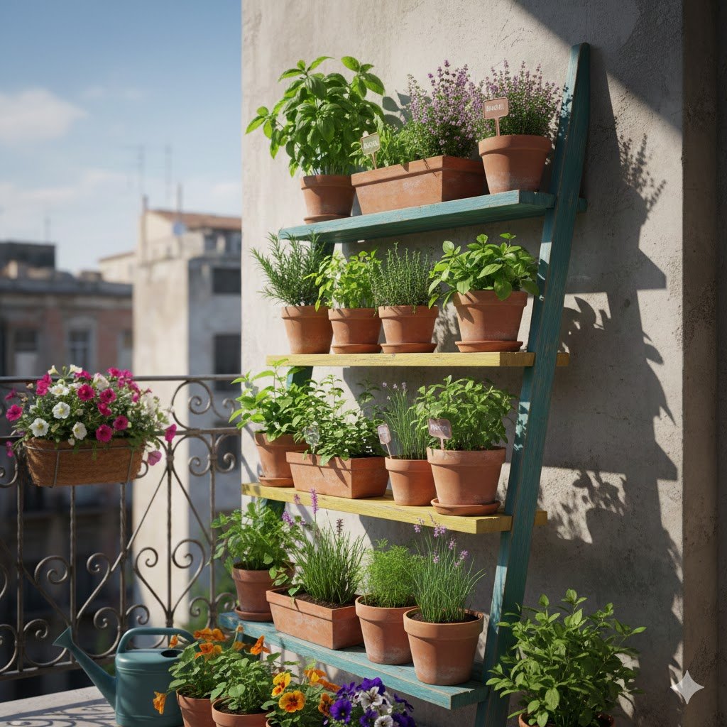 You can find these shelves at any home goods store, often marketed as blanket or bathroom storage. Look for one made of treated wood or metal to handle moisture; indoor-only shelves will quickly warp or rust. Once you have it, the setup is as simple as placing rectangular or round pots onto the steps. Just ensure the pots aren’t too deep—shallow roots are fine for most balcony herbs—and make sure the weight is balanced, especially if you have heavier terracotta on the top shelf.
