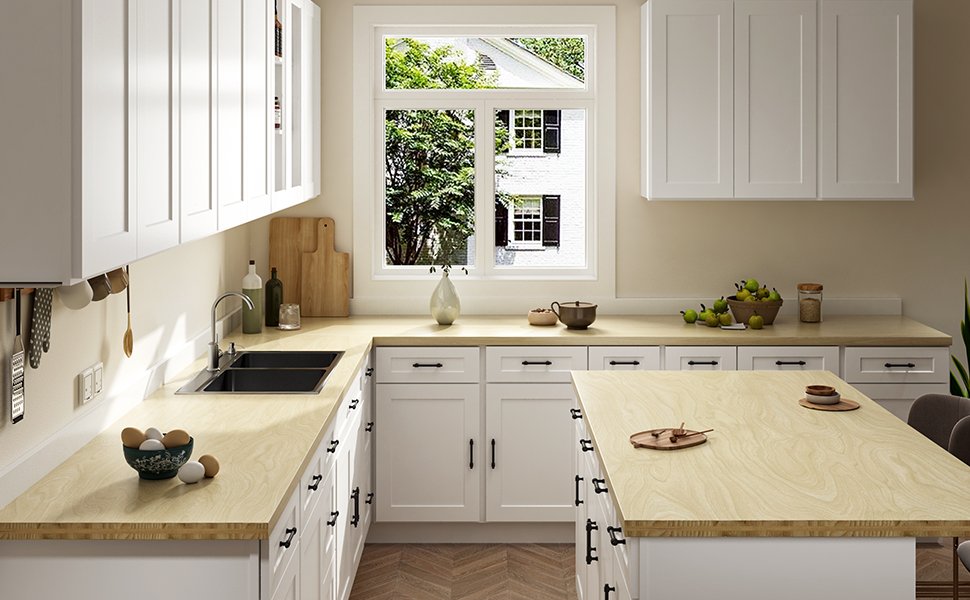 Butcher block is another excellent option. It brings warmth and a touch of rustic charm to the kitchen while being durable and functional for daily use. Over time, the wood will develop its own story through marks, stains, and natural aging.