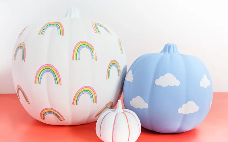 The boho rainbow is a modern twist on classic fall décor. Using earth tones like terracotta, mustard, olive green, and dusty rose, paint arches onto your white pumpkin to resemble a stylized rainbow. Keep the arches soft and imperfect for that handmade, artisanal feel.