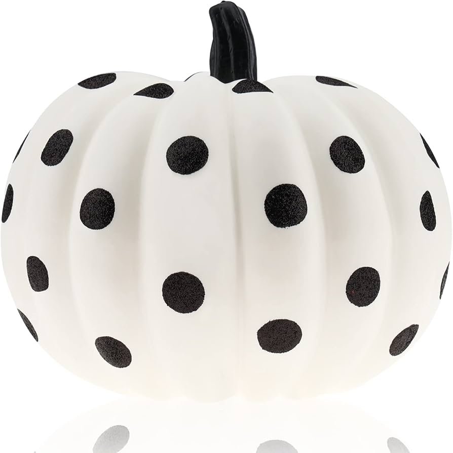 Polka dots are playful and easy to apply, making them ideal for a quick and fun pumpkin makeover. Use round sponge brushes or even the eraser end of a pencil to dab uniform dots across your pumpkin.