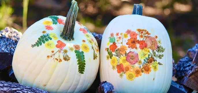 A hand-painted floral wreath around the stem of your pumpkin adds elegance and femininity to your fall décor. Use muted tones like blush, lavender, olive green, and peach to create soft, painterly blooms.