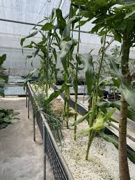 Instead of corn, consider bush beans or dwarf peas. They add greenery, fix nitrogen, and actually produce something edible in a small space.
